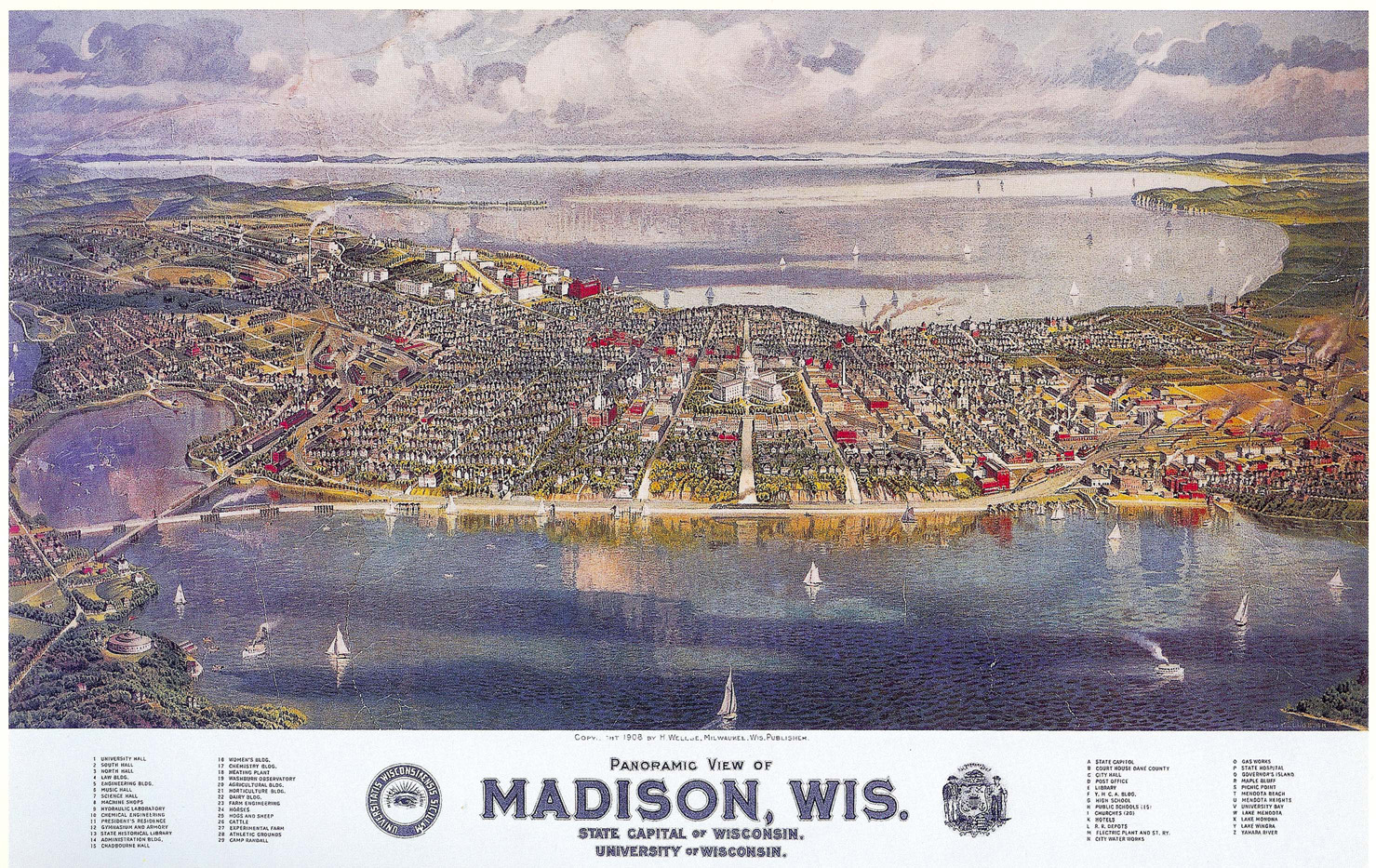 上: マディソン 鳥瞰図 1903年 Bird's Eye Views, John W. Reps より