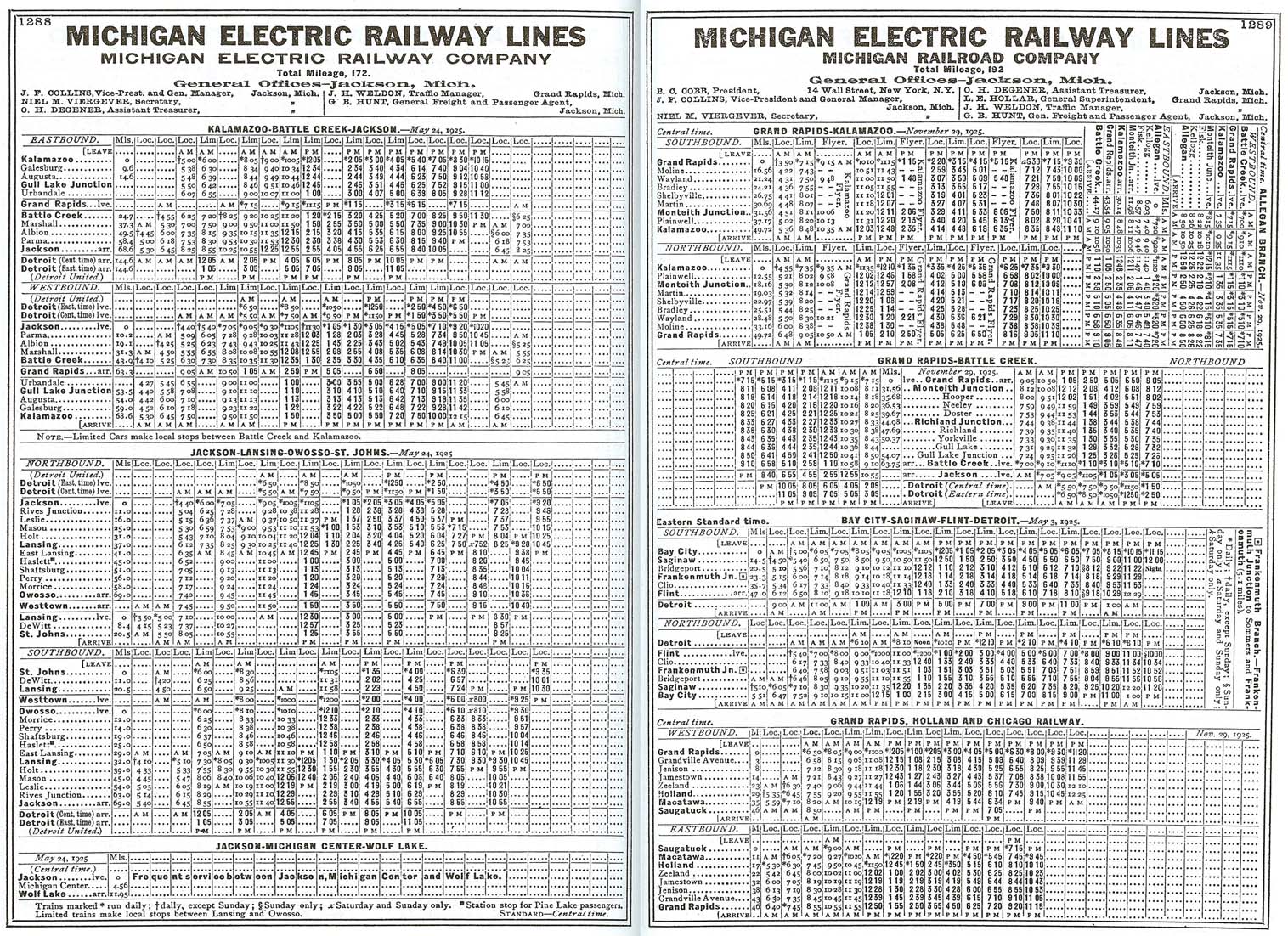 都市間電鉄 (Electric Interurban) の最初の駅は、ポーテージ街停車場 (Portage Street Station) で、ミシガン街と交わるところにあった。この駅舎は 1906年に ミシガン・ユナイテッド鉄道によって建設されたものであったが、カーブがきつかったので電車の出入りには不便な構造であった。そこで、ターミナル駅は、1914年 ウォーター街駅 (Water Street Station) へ移っていった。ここは、1872年民間会社の建物として建設さたもので、この建物が駅として利用され、電車は隣の敷地に停車していた。1928年に グランド・ラッピッヅ と バトルクリーク への路線が廃止されるまで駅として使用された。
