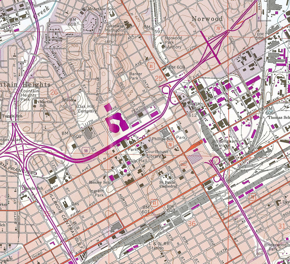 バーミンガムの ターミナル駅 (Terminal Station) は 1909年に完成した。駅舎の真下には5番街がトンネルを堀り、駅の東西を結んでいた。戦争中の