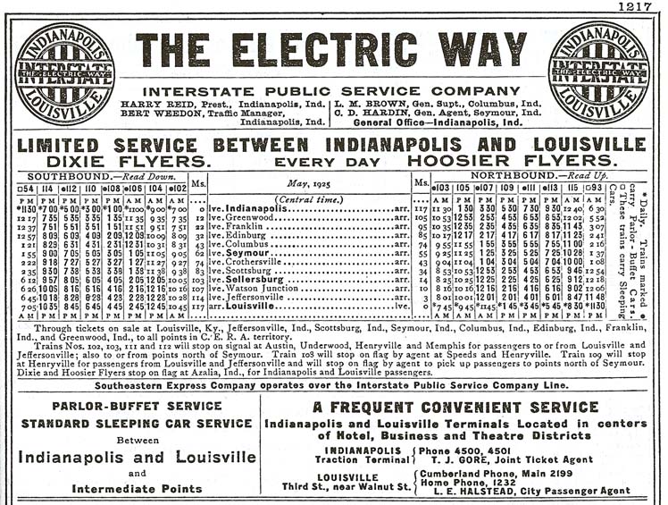 インターステース・パブリック鉄道は、インディアナポリスとルイビルを結ぶインターアーバン(都市間電鉄)であった。117マイルの両都市間には、夜行列車には寝台車連結、昼間は展望パーラーカーの連結が行われていた。1941年 自動車の発達により終焉を迎えた。