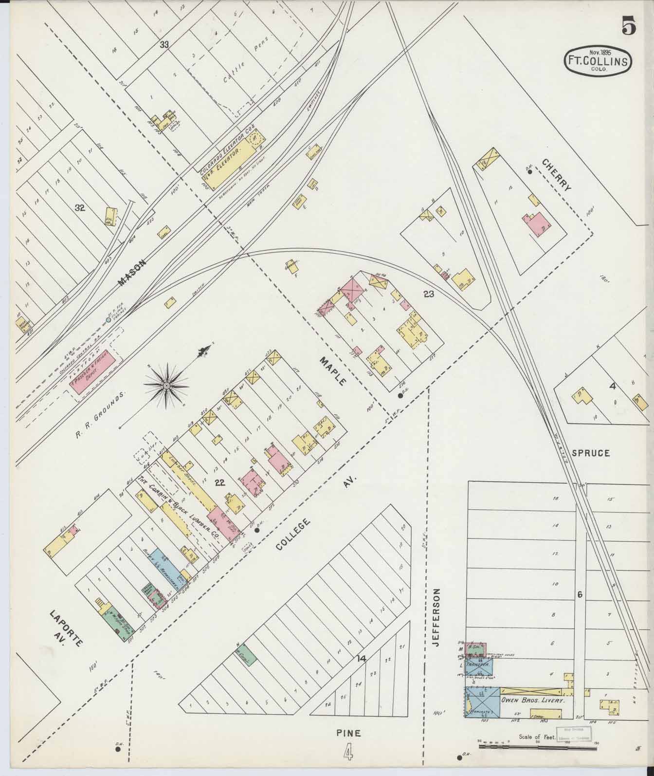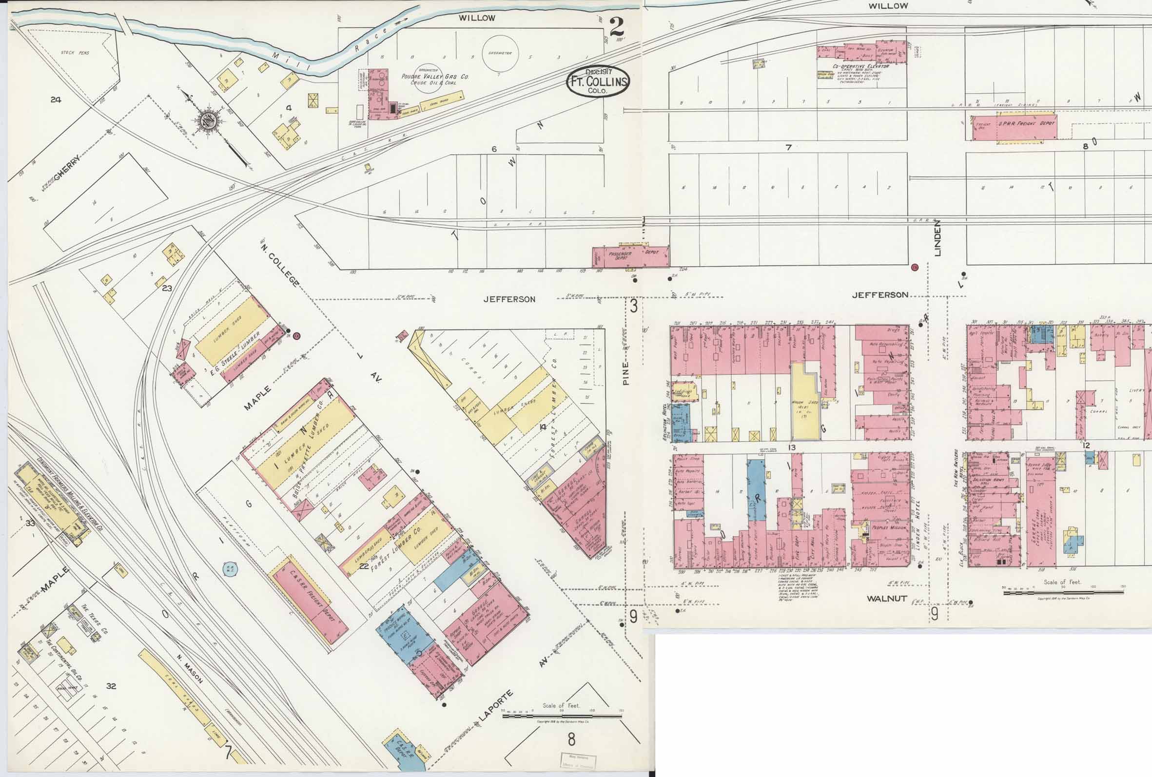 フォートコリンズの駅は、1877年築の、旅客貨物兼用の駅舎が建てられ、1899年には新し旅客駅舎が建てられ、1906年に貨物駅舎が新築されている。旅客駅舎は1952年に解体されたが、貨物駅舎は残り、現在では市内交通の拠点(Downtown Transit Center)となっている。