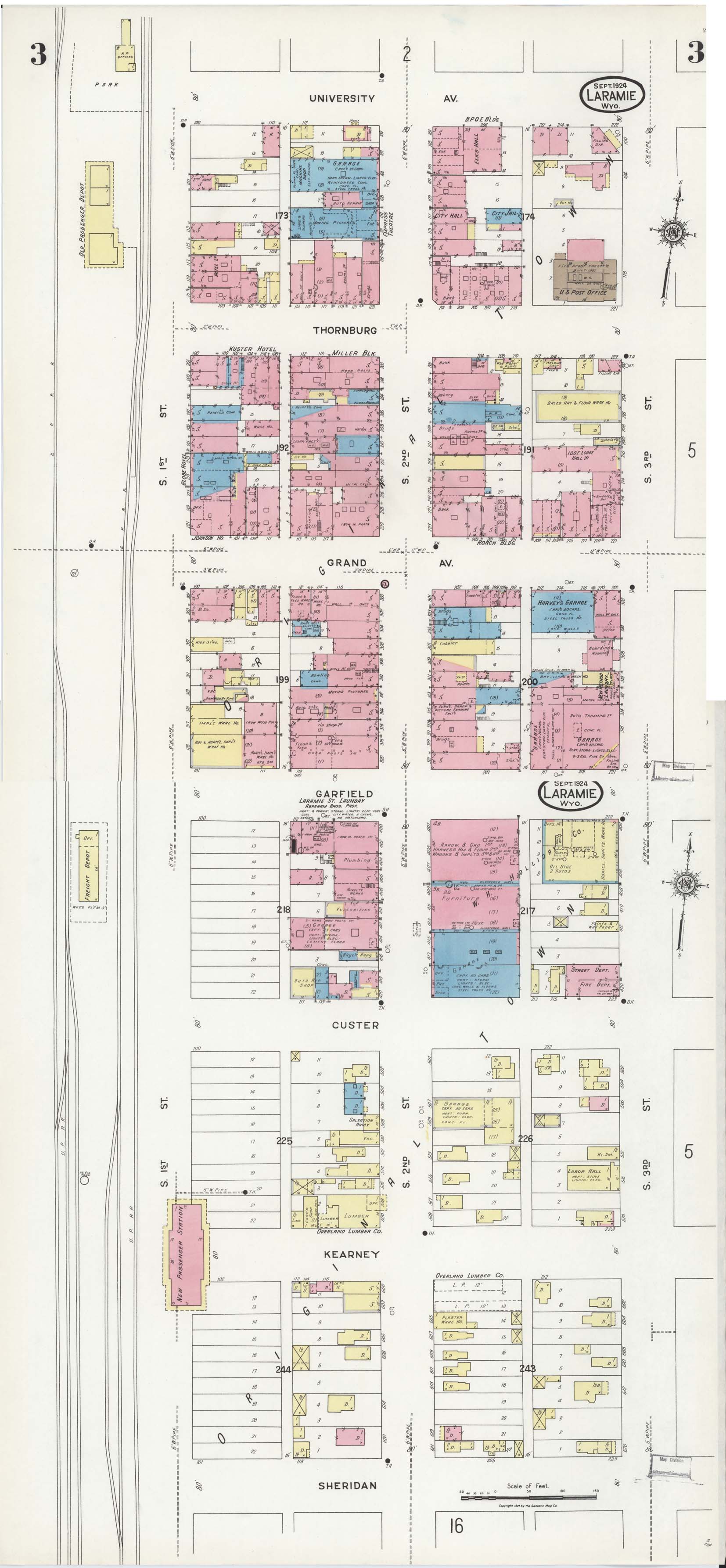 ララミー、ユニオンパシフィック駅の初代の位置はユニバシティー街と線路の交わる当たりにあり、今でも街の中心はその付近にある。1917年に火災で焼失し、1924年に旅客駅は6ブロック南に移り、1971年まで ユニオンパシフィック鉄道、その後、1983年まではアムトラックの駅として使われていた。現在もその駅舎が残っている。