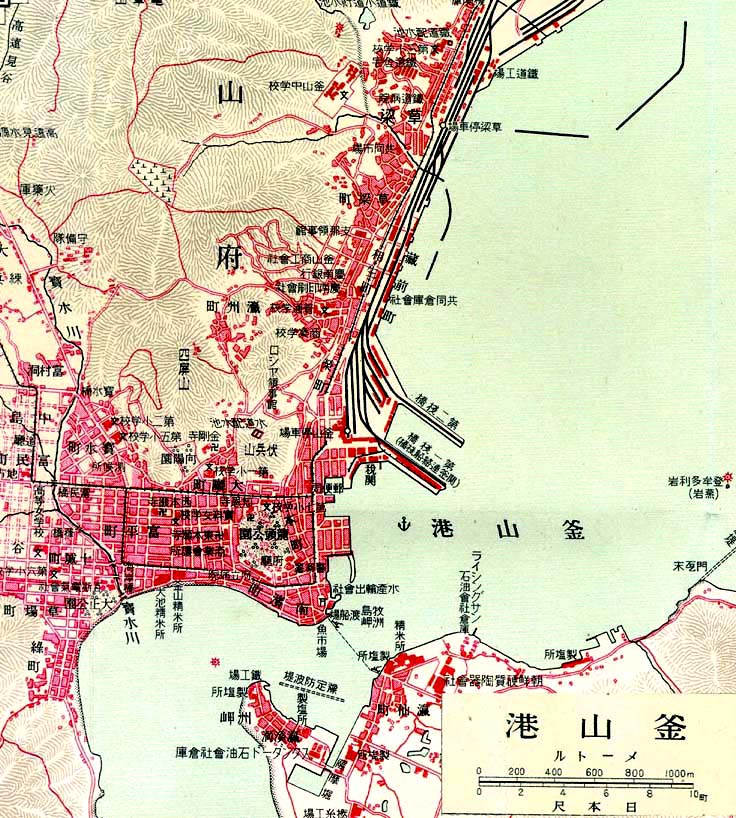 充工事が完成した。これは釜山鎮埋立地に一部を使って行なったもので、従来凡一洞にあった釜山鎮駅は1.7km釜山寄りの現在地に移された。 解放後、1969年に釜山鎮−釜山間で埋め立て地を使って線路の移設が行なわれ、釜山駅は1km程釜山鎮駅寄りに移設され、草梁駅は統合廃止された京釜鉄道が開通した当時の始発点に戻ってしまった形である。かつての釜山駅と駅前広場の跡には銀行などのオフィスビルが建ってしまって全くその跡をしのぶ面影はない。ただ国際旅客埠頭と呼ばれている元の関釜連絡船埠頭からは今も下関・博多・神戸・大阪へ向けての定期フェリー、そして更に下関・博多に向けて高速船が出帆している。博多行きの高速船はJR九州ビートルU、かつては鉄道省が運航していた博釜連絡航路だ。そしてその埠頭内部にまで引き込まれた貨物線はかつての釜山埠頭駅の名残なのだろうか。