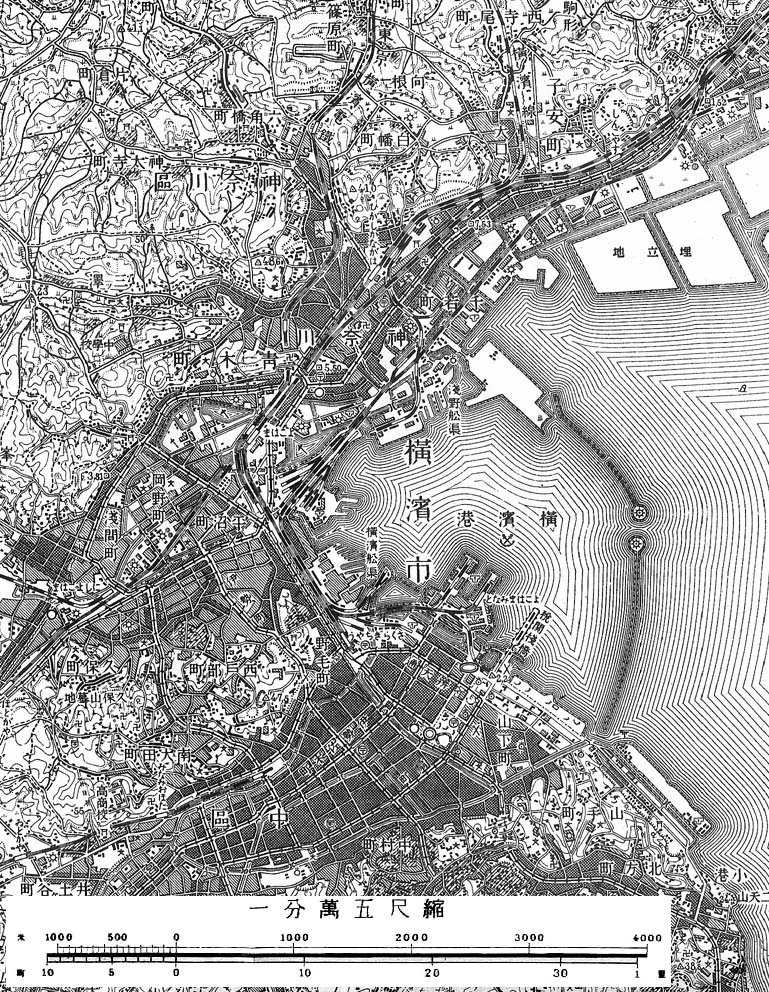 横浜港駅周辺地図 昭和21年測図