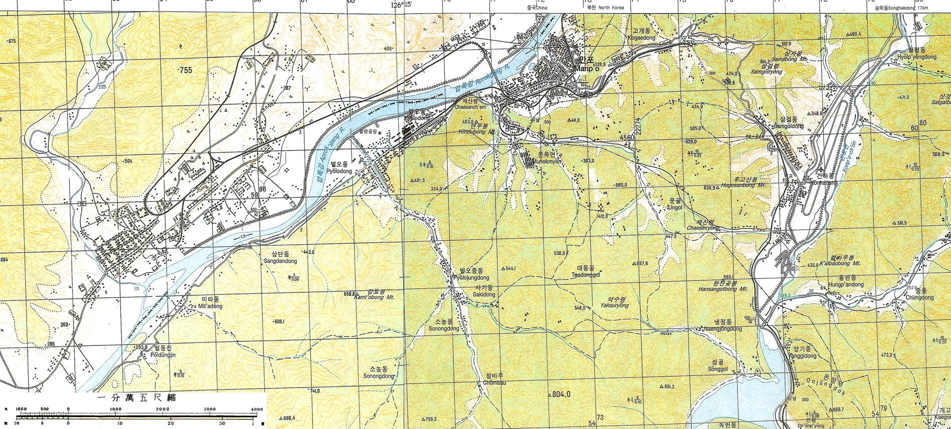 朝鮮総督府鉄道 満浦線は平元線順川駅を基点に、昭和7(1932)年11月1日 泉洞まで開通を皮切りに、終点の 満浦 までは、昭和14(1939)年2月1日に全通した。鴨緑江の対岸、当時の満州国では、梅集線が奉吉線の梅河口駅を基点に、1936年から1939年にかけて開通した。梅集線の終点は鴨緑江を渡った 満浦 とされ、昭和14(1939)年10月1日、満浦鴨緑江橋梁が完成した。満浦駅は国際接続駅としての機能を備えていた。