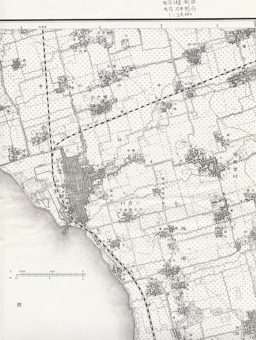 長浜−深谷間は、貨物線となり明治29(1899)年までは貨物のみ運転されていた。明治32(1901)年、柏原経由の現在線が開通し、深谷廻りの線路は廃止された。