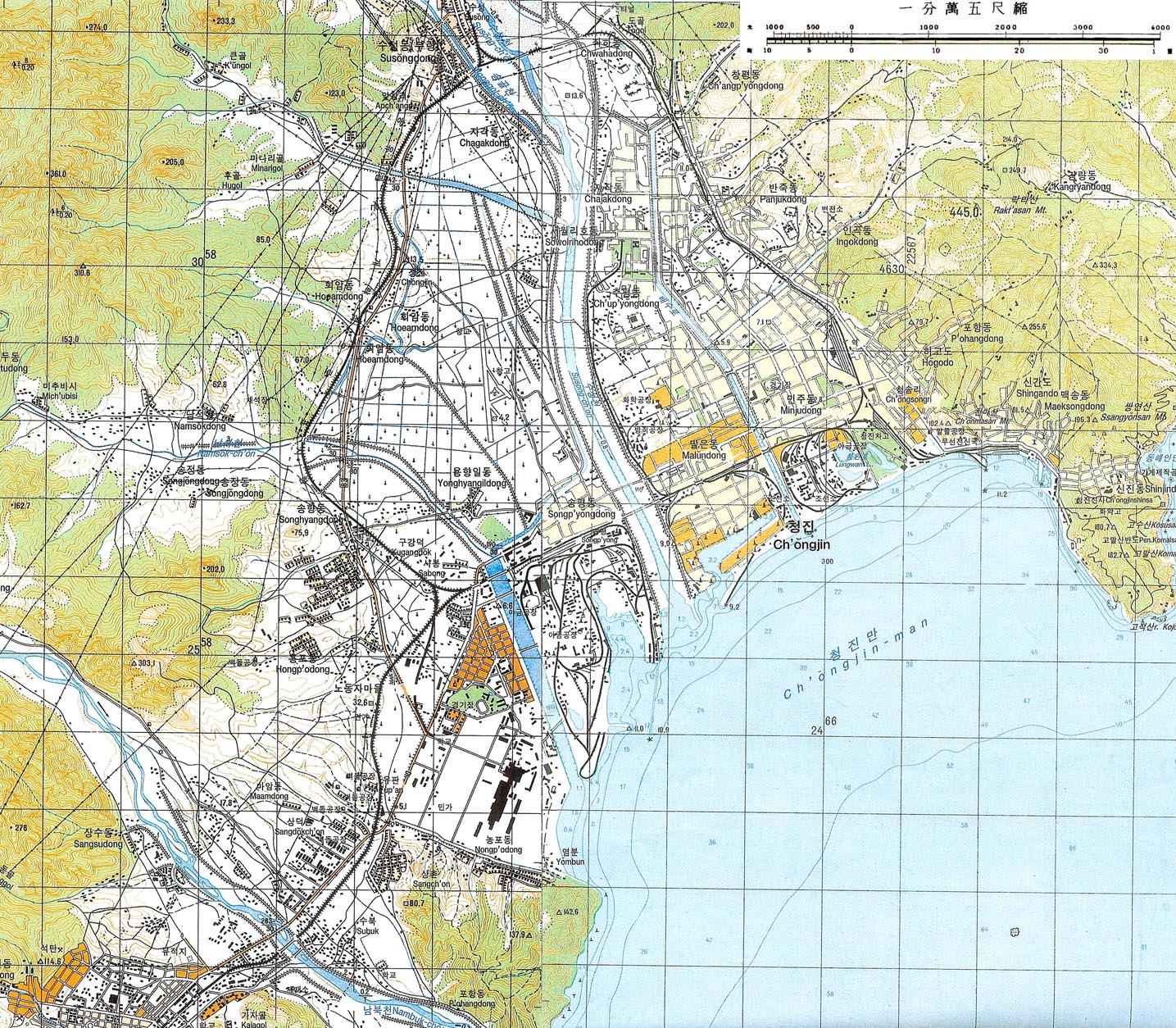 5万分1地形図 清津、羅南 1997年 高麗書林より