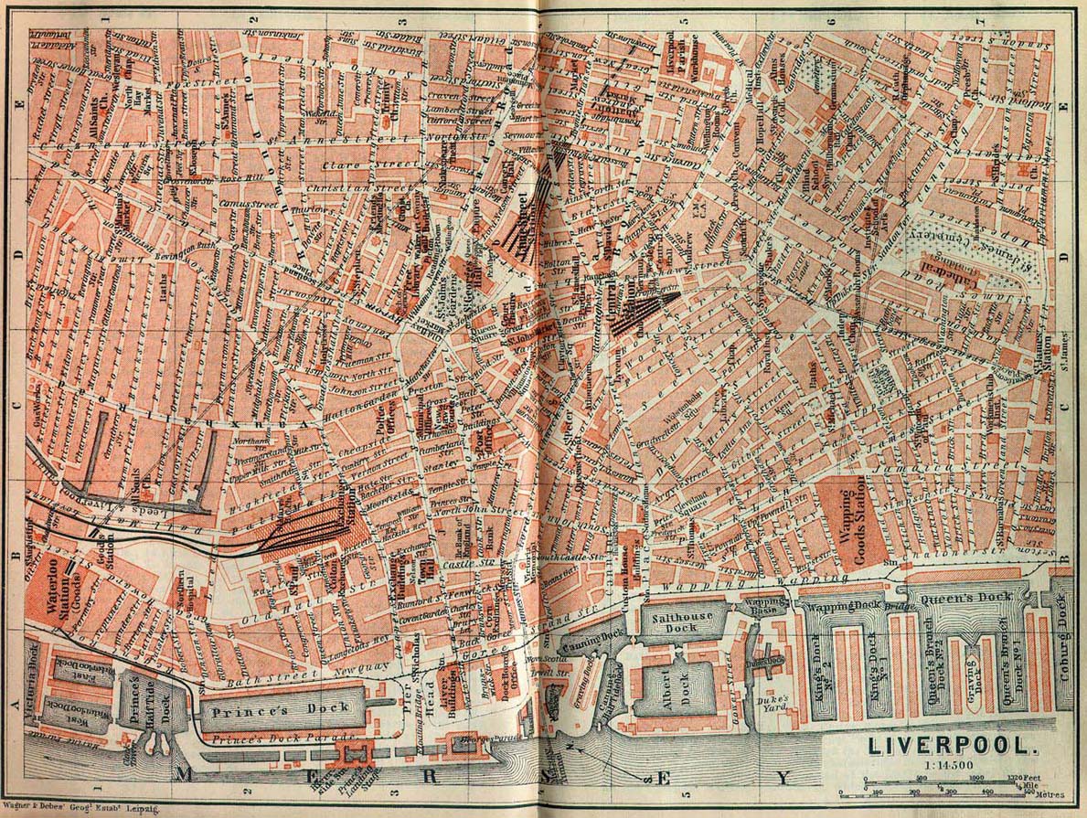 リバープールで最初の鉄道ターミナルは、クラウン街停車場(Crown Street Station) で、マンチェスターは リバプール街停車場であった。まもなく、それぞれの停車場はより市街部に近い場所に移転され、リバプールでは ライム街停車場(Lime Street Station)が1836年、マンチェスターでは ヴィクトリア停車場(Victria Station) が1844年に開業した。1884年には、ビクトリア停車場の隣に エクスチェンジ停車場が開業して、リバプールのライム街停車場行きの列車はこの駅からの発着となり、1969年まで続いた。