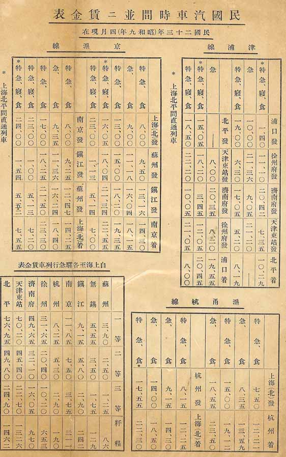 津浦鉄道、滬寧鉄道 昭和9年時刻表