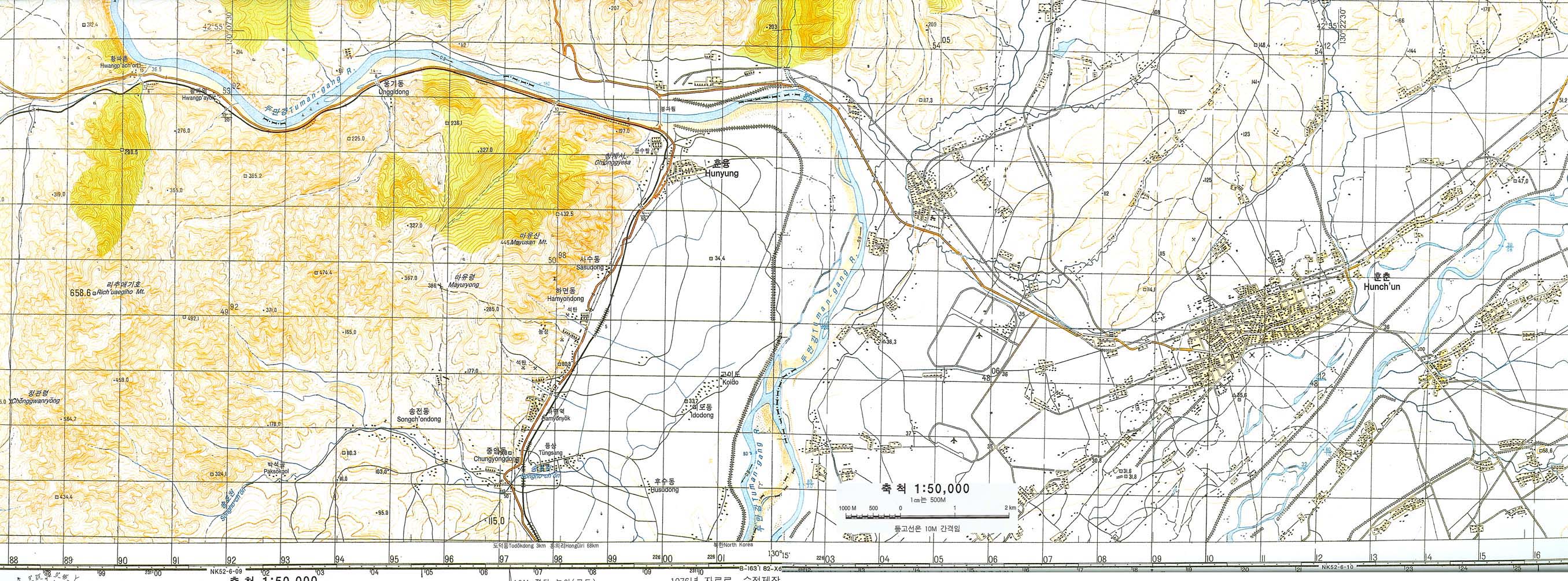 上: 琿春付近 5万分1地形図 1976年資料修正 高麗書房