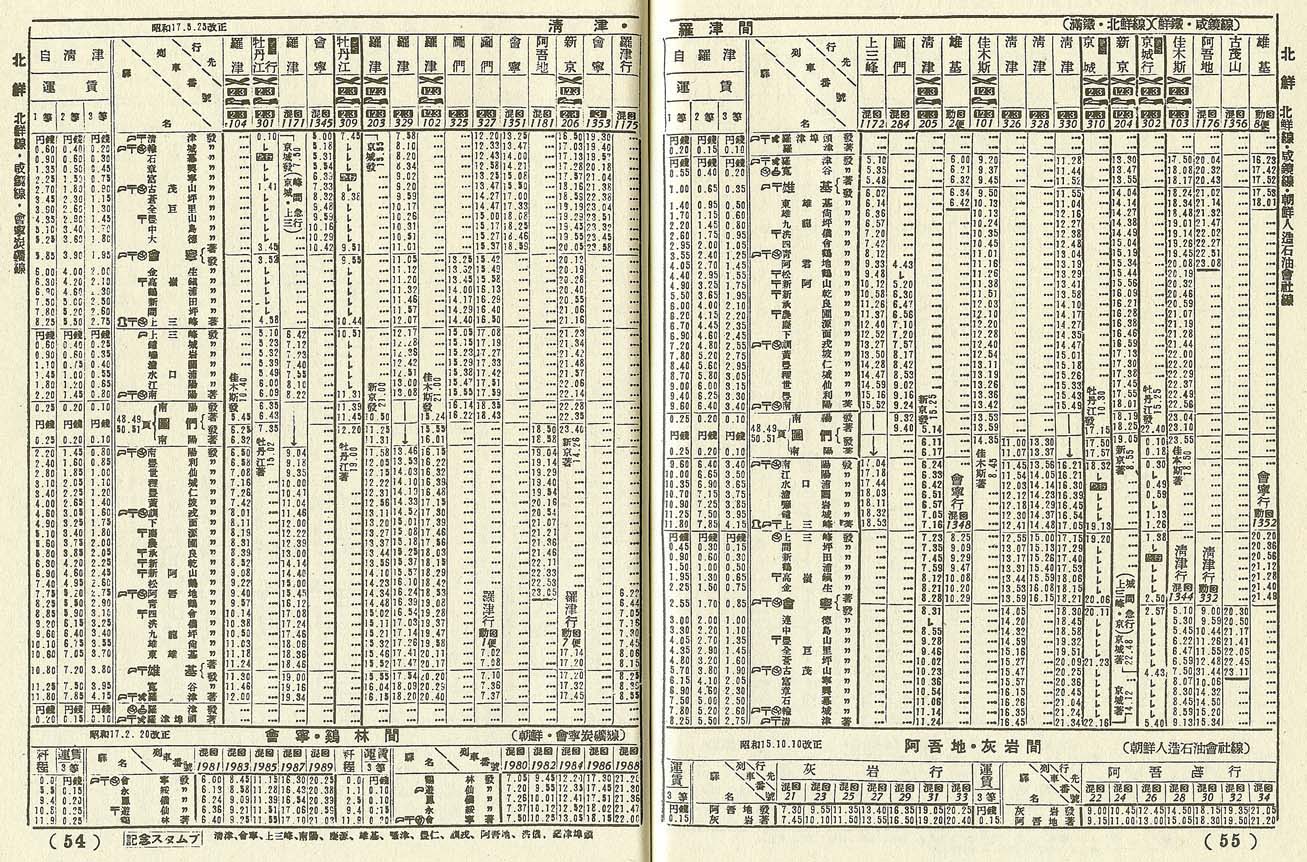 時刻表: 満鉄北鮮線 昭和17年7月 満州支那汽車時間表(復刻版)より