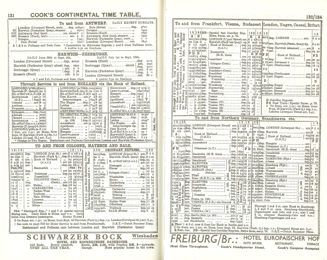 この行き止まり式ホームから、ヨーロッパ各地へ向かう国際列車が発車していた。戦前にはドイツの代表する 「ラインゴルト(Rheingolld)」のミラノ行き、普通急行のベルリン行き、ハンブルグ行き、ブタペスト行きが発着していた。戦後、50−60年代にかけて、ラインゴルト(Rheingold)のバーゼル行き、ローレライ(Loreley)のバーゼル行き、ホーランド・スカンジナビア急行(Holland Skandinabien express)のコペンハーゲン(Copenhagen)、、北西急行(Northwest Express)のワルシャワ・モスクワ行きなどが発着していた。しかし、1993年5月の北急行の乗り入れ廃止により フック・ファン・ホーランド発着の国際列車は姿を消した。