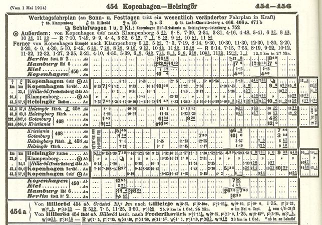 コペンハーゲン=ヘルシンオア間の列車は、Hillerod 経由の北部鉄道まわりとKlampenbourg 経由の海岸鉄道まわりの両方があり、コペンハーゲンの発着駅が異なっている。