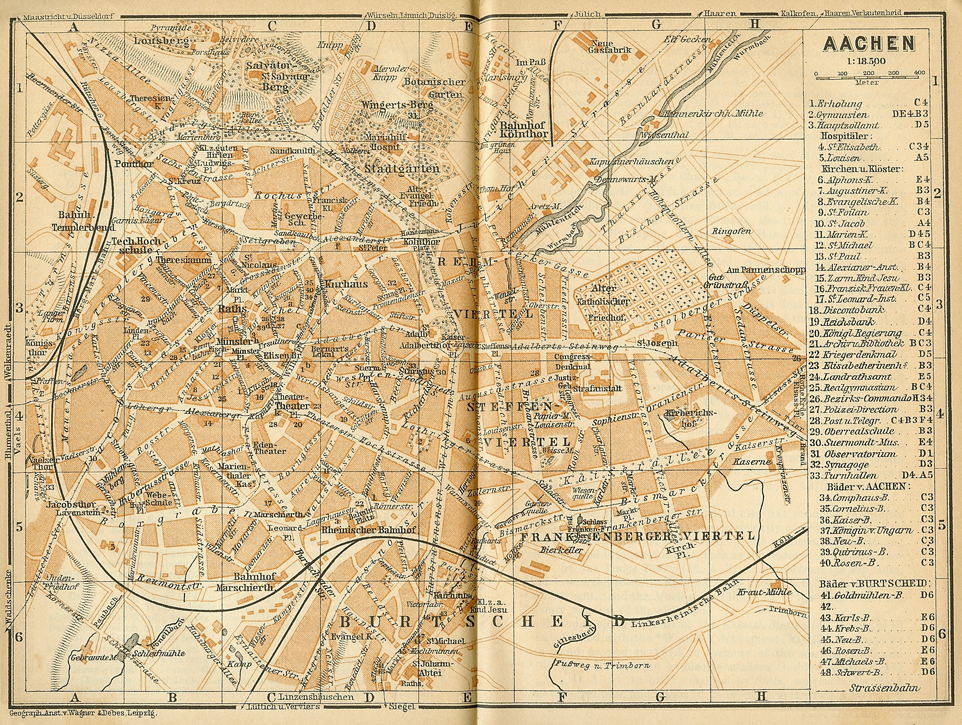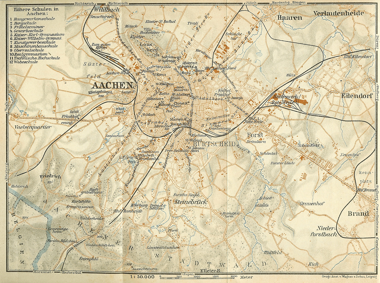 Baedeker (Rhein, 1926) からアーヘン付近地図