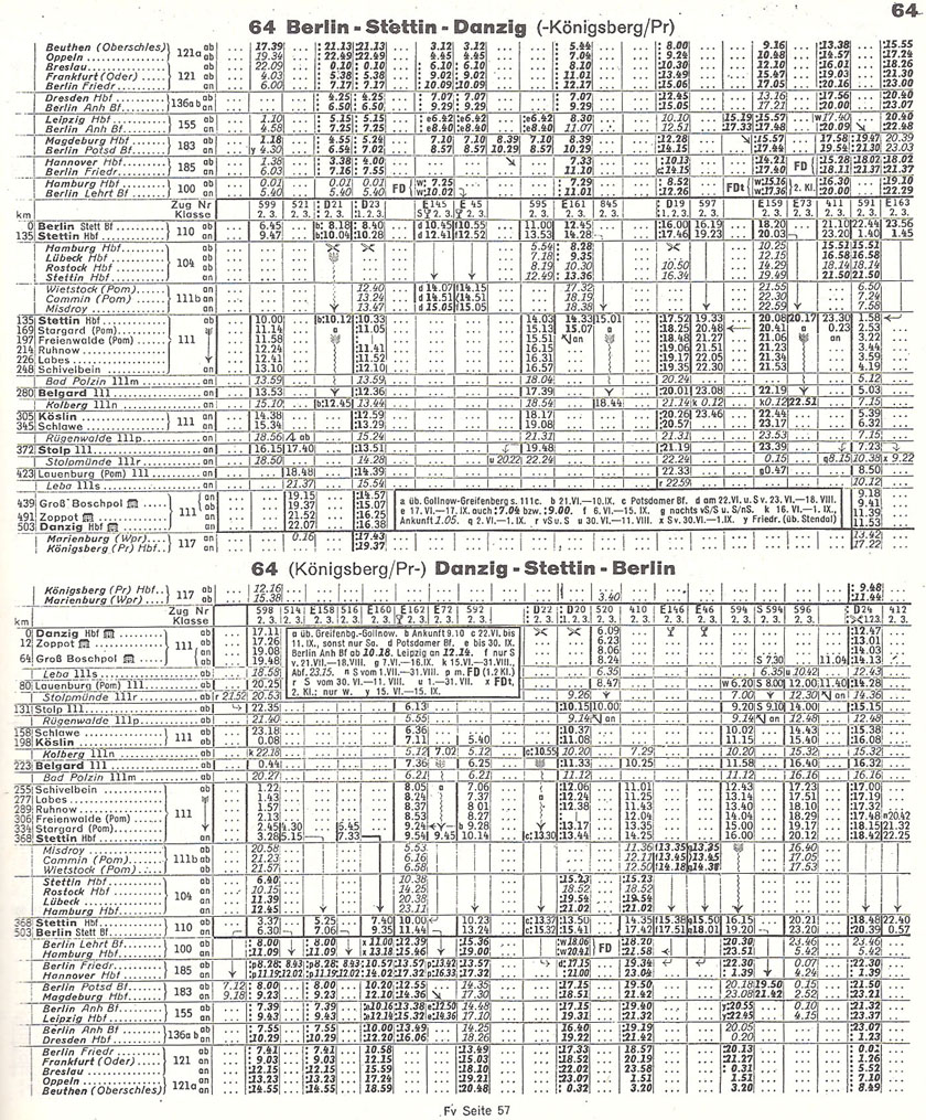 ベルリン(Belrin)とシュテッティン(Stettin, Szczecin)を結ぶ ベルリン = シュテッティン鉄道は、1843年に開通し、ドイツでも最も古い鉄道の一つである。この鉄道のベルリンの駅は、シュテッティン駅(Stettiner Bahnhof) と名付けられた。ノイシュトレリッツ(Neustrelitz) を経由し、ストラルズンド(Stralsund) へ向かう、ベルリン北部鉄道の列車も、このシュテッティン駅を使うようになり、この駅を発着する列車は、ロストック(Rostock)、シュトラルズンド(Stralsund)、そして、連絡船を介して、オスロ(Oslo)、ストックホルム(Stockholm) へ向かう国際列車、シュテッティン(Stettin, Szczecinn)、ダンツィヒ(Danzig, Gdansk) 、東プロイセンのケーニスベルク(Könisberg, Klininglad)への国際列車であった。