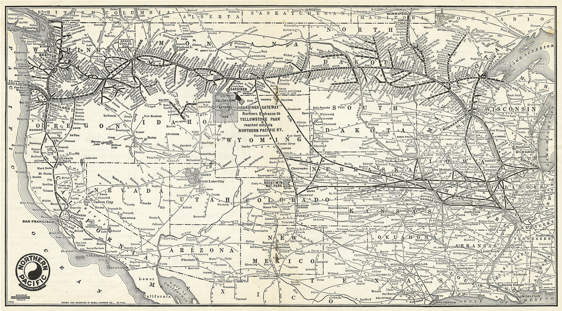 Coast Limited)」である。この列車は開放型展望車を連結し、車内には個人用浴室や理容室、ソーダファウンテン、電気ラジオを備えた豪華設備を誇る列車であった。1911年にはこの列車はノーザンパシフィックの起点であるセントポール(St.Paul,MN)から、シカゴ(Chicago,IL)に延長されて、シカゴノースウエスタン鉄道(Chicago