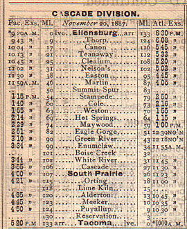 Railway & Navigation)の路線を使い、コロンビア川(Columbia River)を少し下った対岸のワシントン州カラマから自社の路線を使用して終点タコマに到達していた。1887年になって、ワシントン州の中央を貫くキャスケード山脈(Cascade