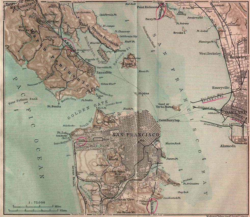 Pacific)鉄道、ウエスタンパシフィック(Western Pacific)鉄道、また地域鉄道系のキールート(Key Route)があり、また隣接した アラメダ(Alameda)にはサザンパシフィック鉄道の近郊列車の発着桟橋駅があった。またそれより北にはポイントリッチモンド(Pint