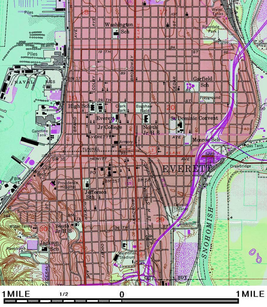 エベレットの町の西の海岸レベルを走るシアトル・モンタナ鉄道に接続するために、東からのグレートノーザンは大きく北へ回りこんでエベレット進入していたが、19XX年に市街部を貫くトンネルが完成し、約6マイルの短縮が達成された。トンネル線と海岸線は5メートルくらいの高低差があり、停車場も二段がまえになっている。
