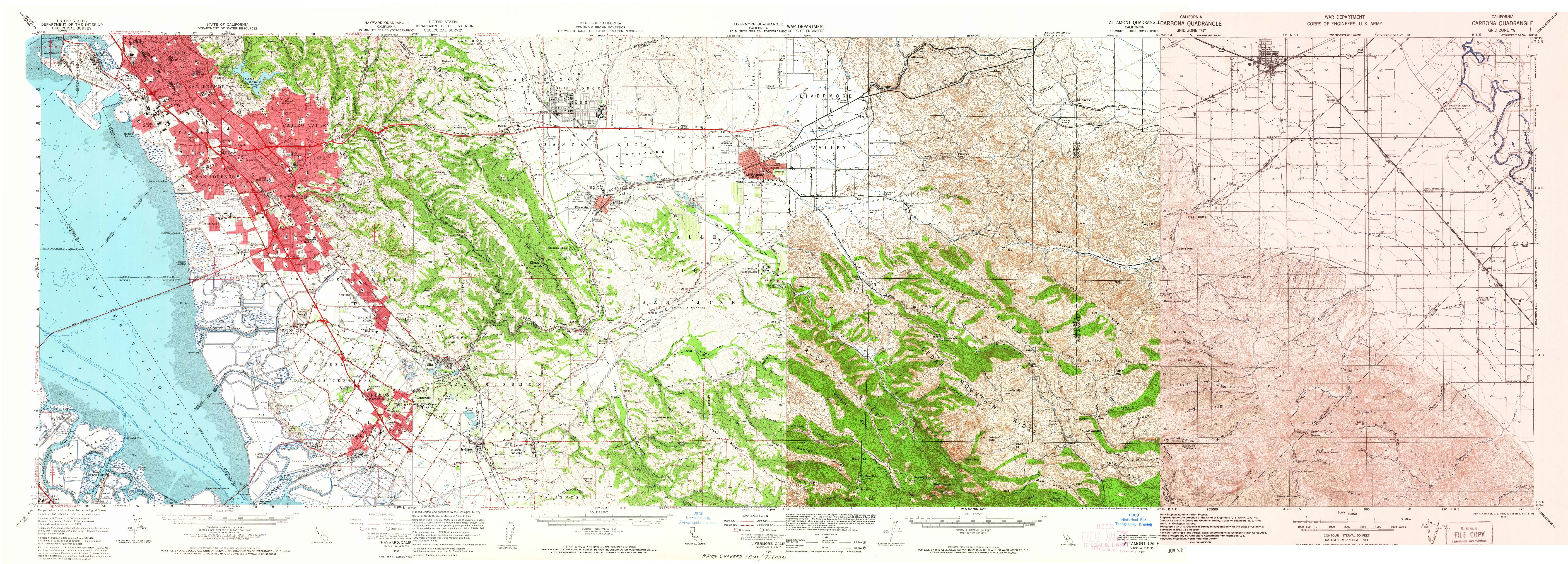 その年の9月6日になって初めて、サンフランシスコ湾に大陸横断鉄道が到達することになる。その時の経路は、サクラメントから、ストックトン(Stockton)、アルタモンタ峠(Altamont Pass)、ナイルズ(Niless)を経てヘイワード(Hayword)に至る (初代)ウェスタンパシフィック鉄道を経由し、そこからサンフランシスコ・アラメダ鉄道(San Francisco & Alameda Railroad)を使ってアラメダのパシフィク通り(Pacific Avenue)のドッグが終着であった。その後1879年ベニシア−ポート・コスタ間(Benicia-Port Coata)間で連絡船の接続による最短経路の完成により大陸横断列車の殆どは新ルートの経由となり、このナイルズ経由のルートは重要性を減らすこととなった。