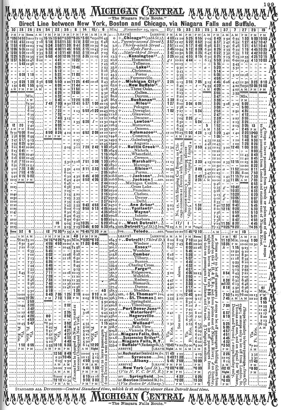 ミシガンセントラル鉄道の駅は、当初、ダウンタウンの3番街(Third Street)にあり、ユニオン駅と隣り合っていた。1850年に完成した駅舎は 1913年の 米加国境トンネルの開通とともに移転した。移転した後の駅舎は、現在(1992年)も残っているが、廃墟状態で、アムトラックは隣接した小さな小屋で営業している。