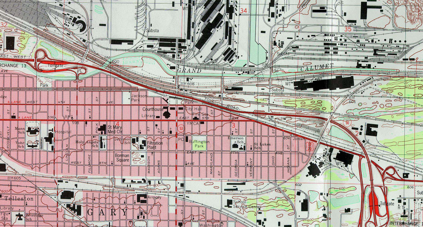ゲーリーは、シカゴの衛星都市で、世界最大と言われる鉄鋼業の中心地で、USスチール社が 1905年に建設した都市である。ここには、シカゴを目指す9つの鉄道会社が通っており、都市建設後、それぞれの鉄道会社は独自の駅を作ったが、レイクショア・ミシガン・サザン鉄道(NYCシステムの一員) と ボルチモア・オハイオ鉄道 は、共同して ユニオン駅を 1910年に建設した。その他にはミシガンセントラル駅、ペンシルバニア駅、ウォバシュ駅、サウスショア駅が別にあった。