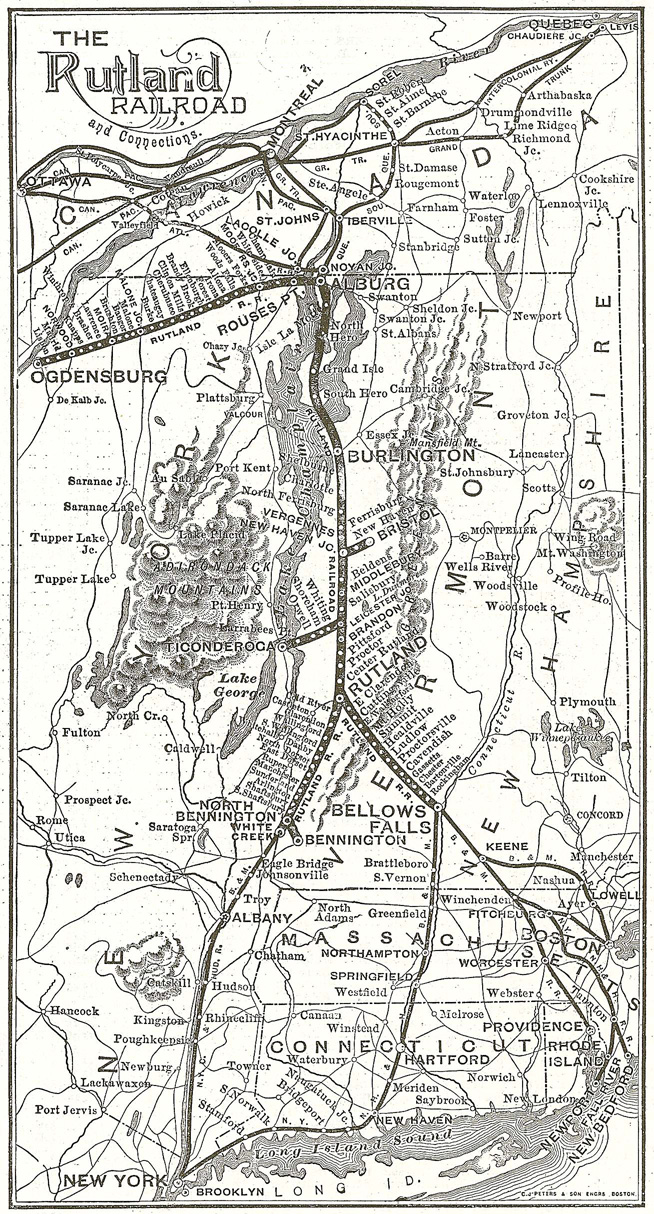 ローゼスポイント=ラトランド間は シャンプラン湖 (Lake Champlain) の埋立て路盤を含む新ルートで 1901年に開通して、ラトランド鉄道に併合された。
