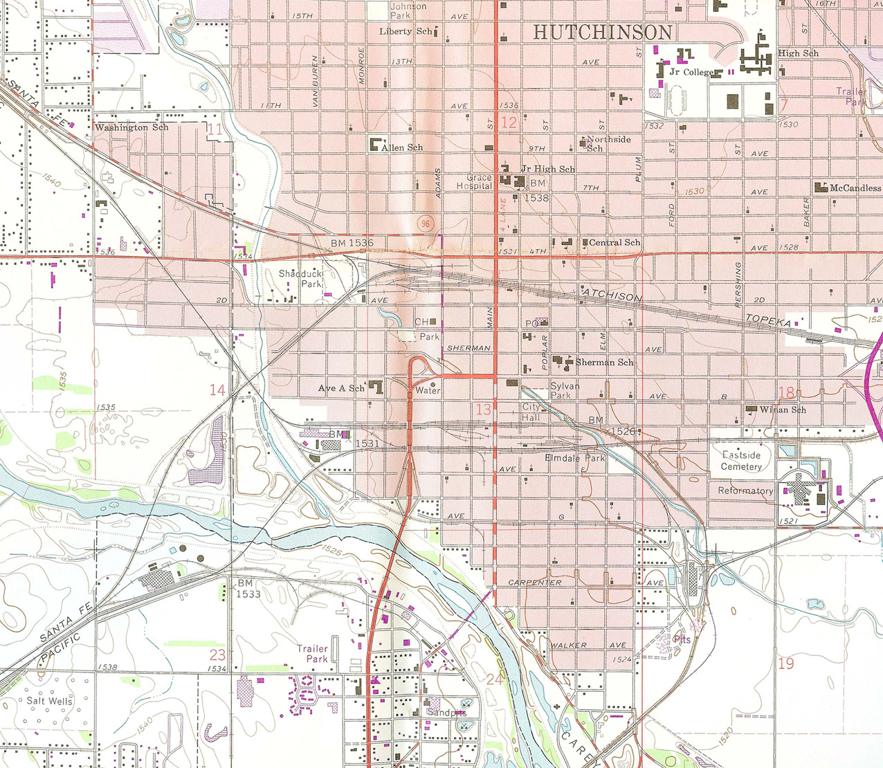 八チンソンは 1887年の岩塩の発見と油田の開発によって急速に栄えた街で、サンタフェ鉄道の本線とロックアイランド鉄道の本線が通る鉄道の要衝でもあった。