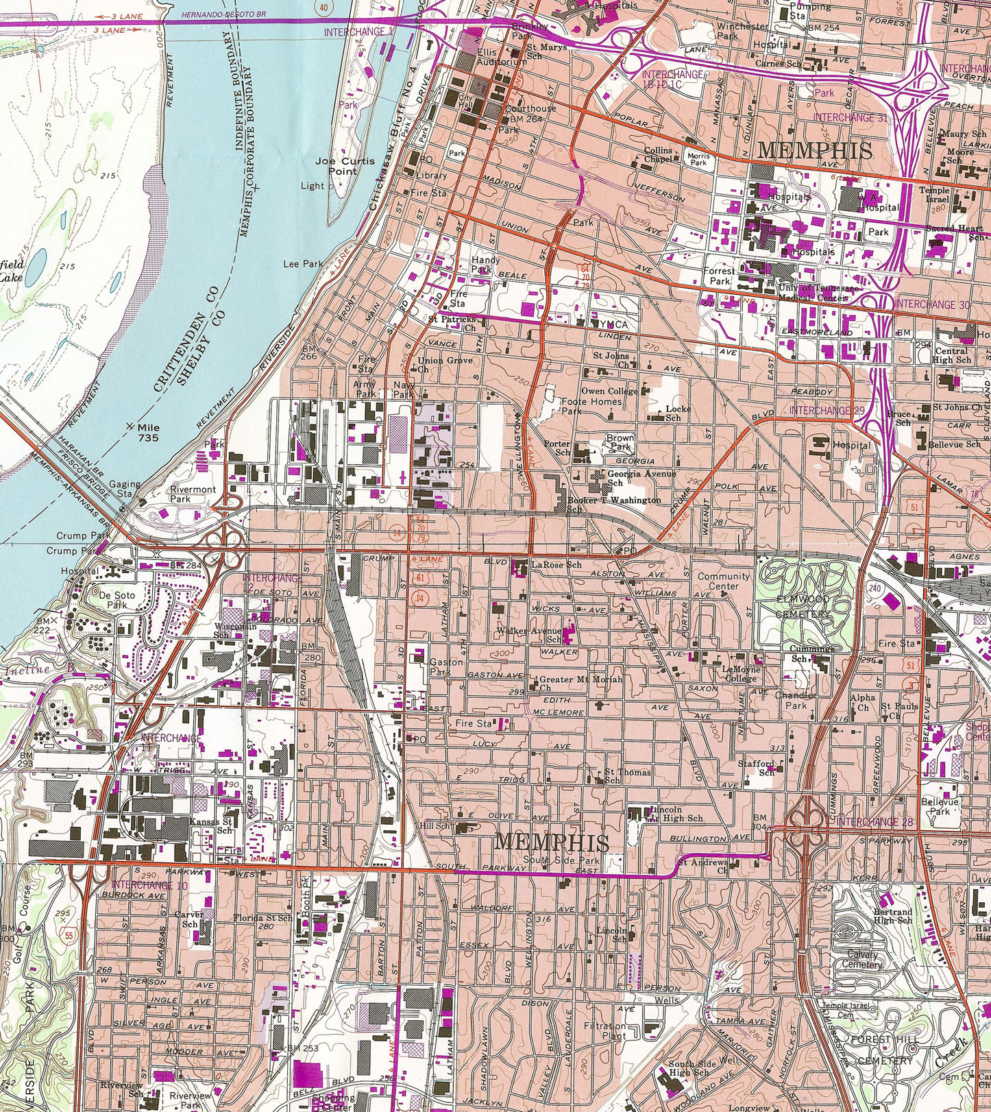 ミシシッピ川の重要な港町として栄えていたメンフィスに東部からの鉄道が到達したのが 1857年、これ以降、メンフィスは単なる鉄道水運の連接点というだけでなく、東西南北から集まる鉄道の一大拠点となっていった。鉄道会社はそれぞれが駅を持ち、1901年頃には6つの駅があった。