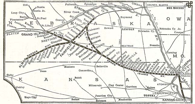 セントジョーゼフ・グランド・アイランド鉄道 (St.Joseph & Grand Island RY) 1901年路線図