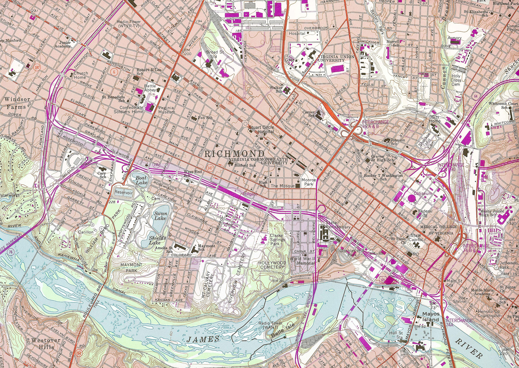 リッチモンド・フレデリックスバーグ・ポトマック鉄道 と アトランティックコースト鉄道 (Atlantic Coast Line) の2つの鉄道は、それまで、ジェームス川(James River) の側の、Byrd St.駅 を、サザン鉄道 (Southern RR) は、また川沿いの独自の駅を使用していたが、1919年、リッチモンド・ターミナル鉄道会社によって建設された ブロード街駅 に移った。アムトラックが 1970年代に去った後は、科学博物館として利用されている。