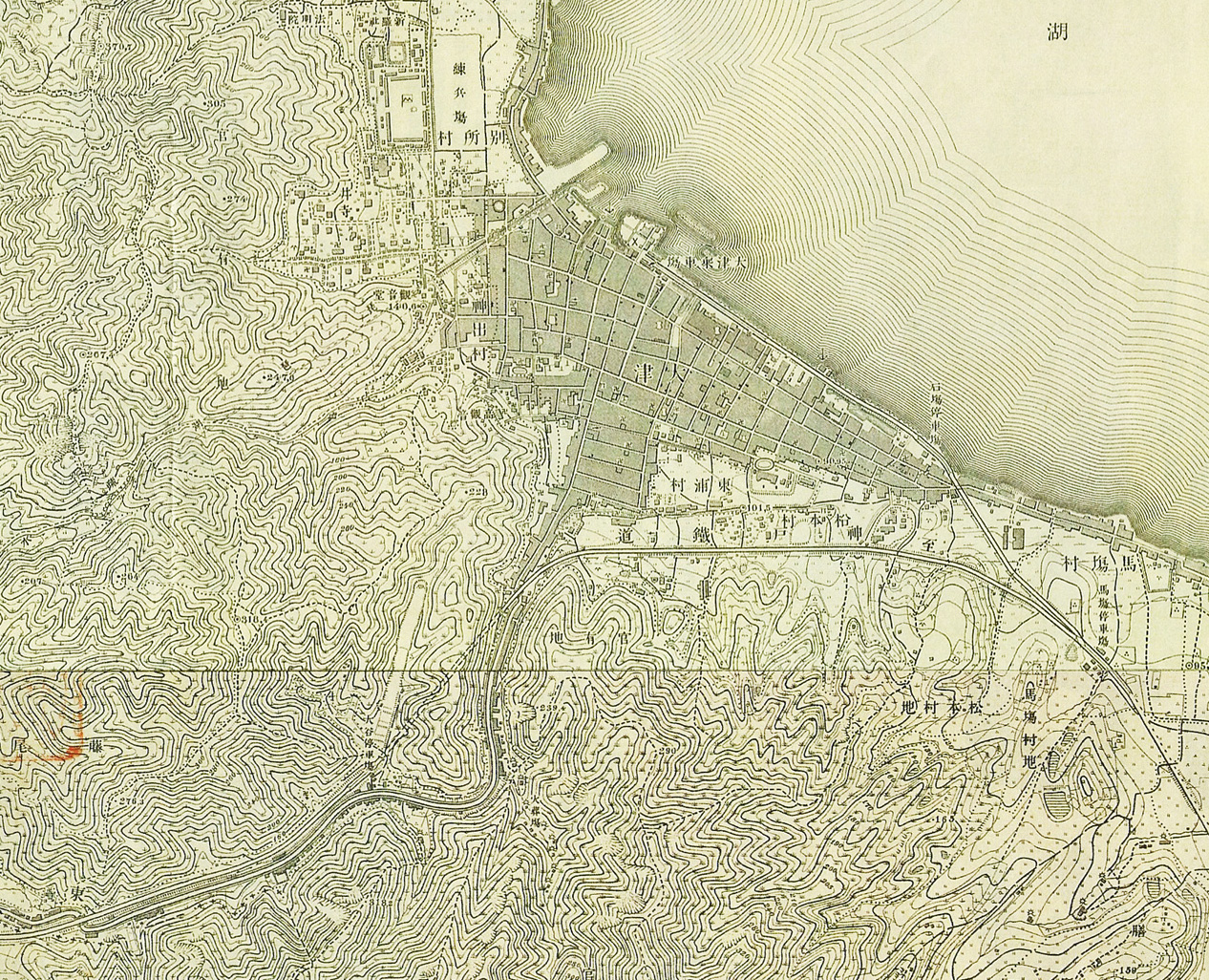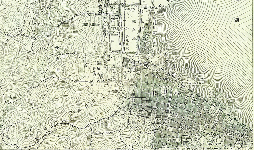 京阪電車の湖側は国鉄との3線軌条であった。(大津百町ガイドブック 大津市歴史博物館 2013 より)