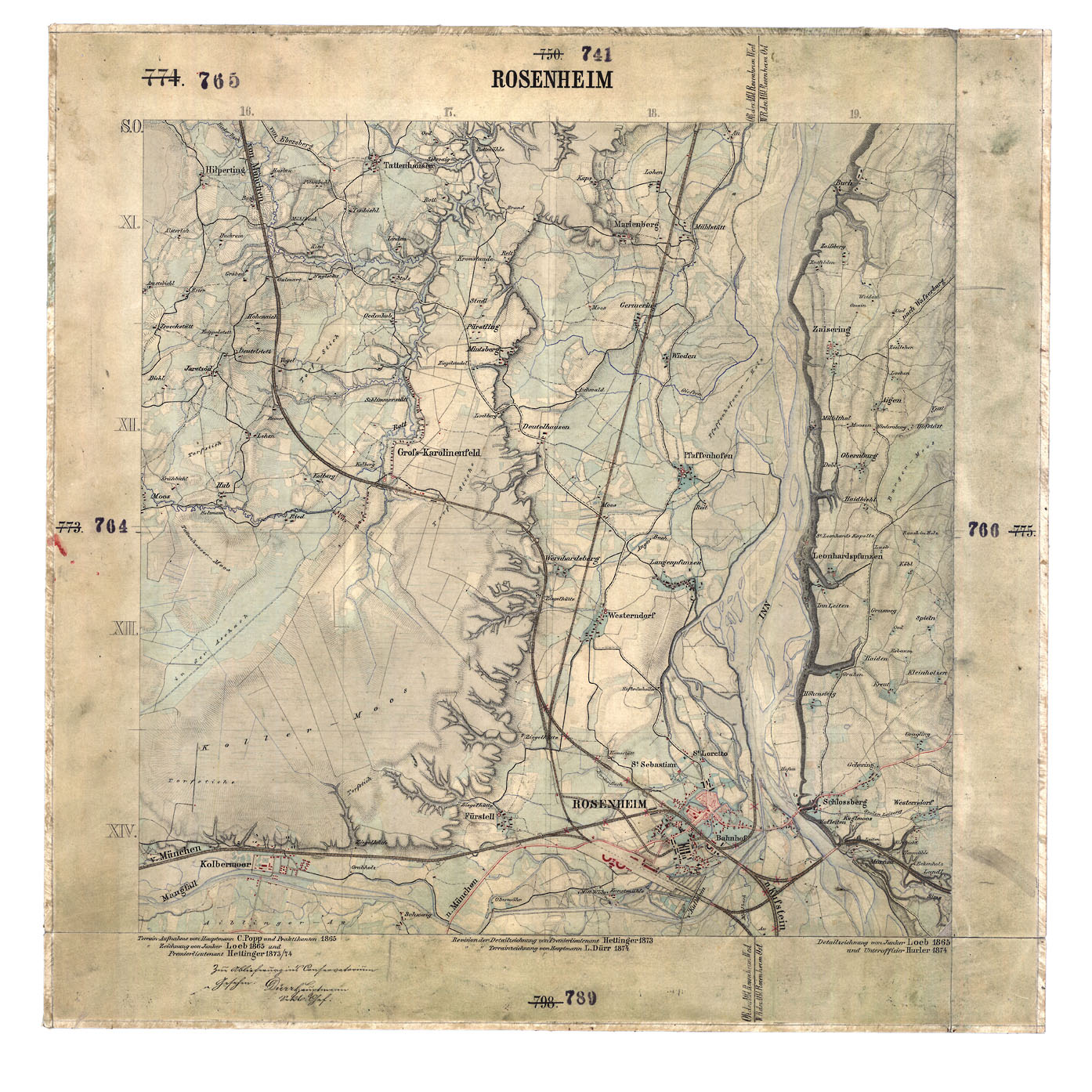 ローゼンハイムの駅はミュンヘンからの路線が開通した1857年10月31日、木造の仮駅舎で開業し、クフシュタインへの路線が開通した1858年、正式な駅舎が完成した。1871年にはミュンヘンからの新路線が開通し、駅構内が手狭となってきた1876年には線路と駅の移転が行われ、現在地に2代目駅舎が完成した。第二次大戦では駅舎が空爆を受け、戦後1957年に現在の駅舎に建て替えられている。1980年にはザルツブルグ方面とインスブルック方面の線路を結ぶ短絡線が完成し、ドイツ国内無停車でオーストリア国内列車扱いとなる列車が運転されるようになった。
