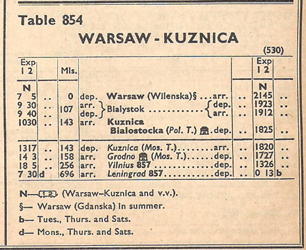 1920年、ウィーン条約発効で独立国となったポーランドの首都ワルシャワ、支配国であったロシアの、革命により首都でなくなった サンクト・ペテルブルグを結ぶ鉄道の始発駅であったこの駅は、新しいポーランドの一部となった ビルニウス(ビルナ、Vilna) の名を冠した、ビルナ駅(Glowna Wilwnak)と改称され、ゲージも標準軌となってビルナへの列車の発着する駅となった。1933年に市街直結線の完成のあとはビルナ、モスクワ方面への優等列車は中央駅(ウィーン駅)からの発着となった。第二次大戦後、ポーランド=ソビエト国境の変更となった クズニツァ(Kuznica)乗り換えで、ワルシャワ=レニングラード間が乗り継げるようになったが、ベラルーシの独立によって、現在はリトアニア=ベラルーシ間で線路は繋がっていない。