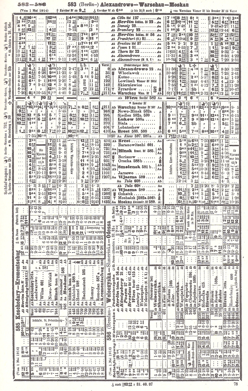 と ストルプス(Stolps)の間に設定され、国境駅まで標準軌化されている。なお、国境の両駅間は2つのゲージの線路が敷かれていた。この時代のワルシャワ=モスクワ間のメインルートは、ビアリストック(Bialystok)〜バラノヴィッチ(Baranowicze)経由に変更されている。