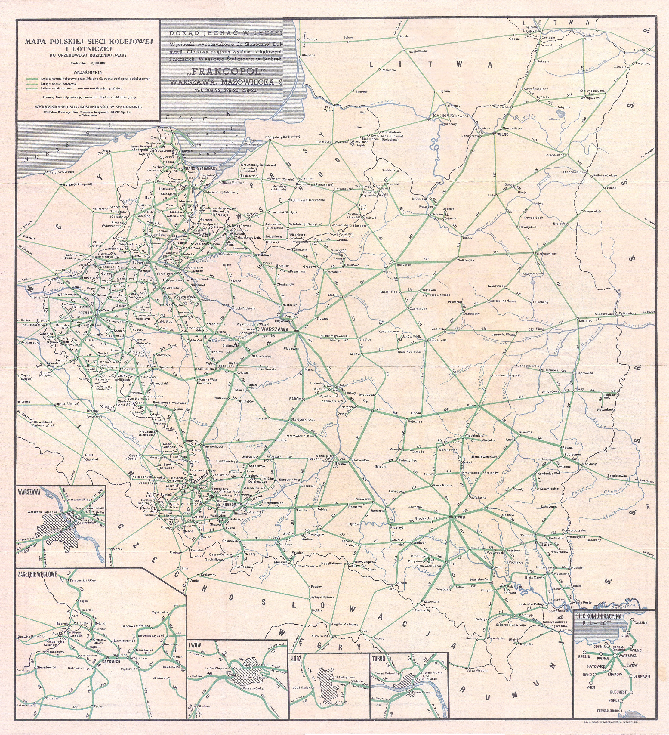 右:1935年ポーランド鉄道路線図(幹線)