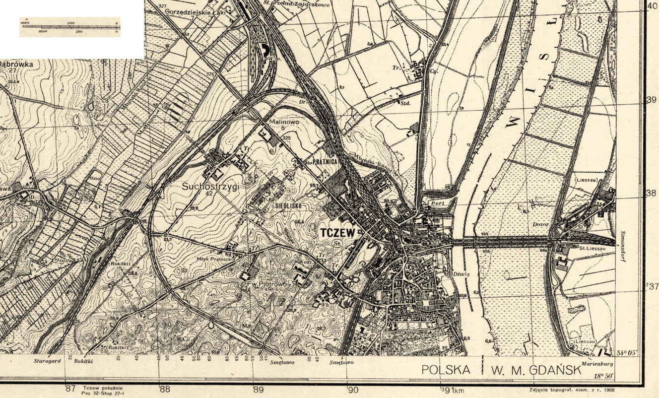 1920年のベルサイユ条約により、ポーランドのトチョフ(Tczew)となり、ダンチヒに向かえば、自由都市ダンチヒとの国境、東に向かえば、自由都市ダンチヒを経てドイツ領東プロイセンと接する国境の街であった。