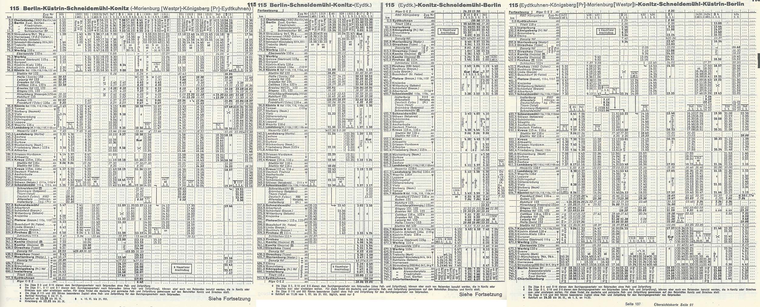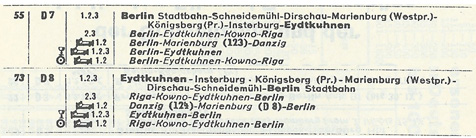 クロスから建設の始まったプロイセン東部鉄道は、1852年にダンチヒ(Danzig, Gdansk)) まで開通し、マリエンブルク(Marienberg, Malbork)・ブラウンスベルク(Braunsberk, Braniewo)間が1852年、さらにケーニスブルク(Koenigsberg, Kaliningrad)へも1853年に開通した。マリエンブルクとディルシャウ(Dirschau, Tcew)の間はビスワ川(Vistula)の架橋が遅れ、1857年に開通している。