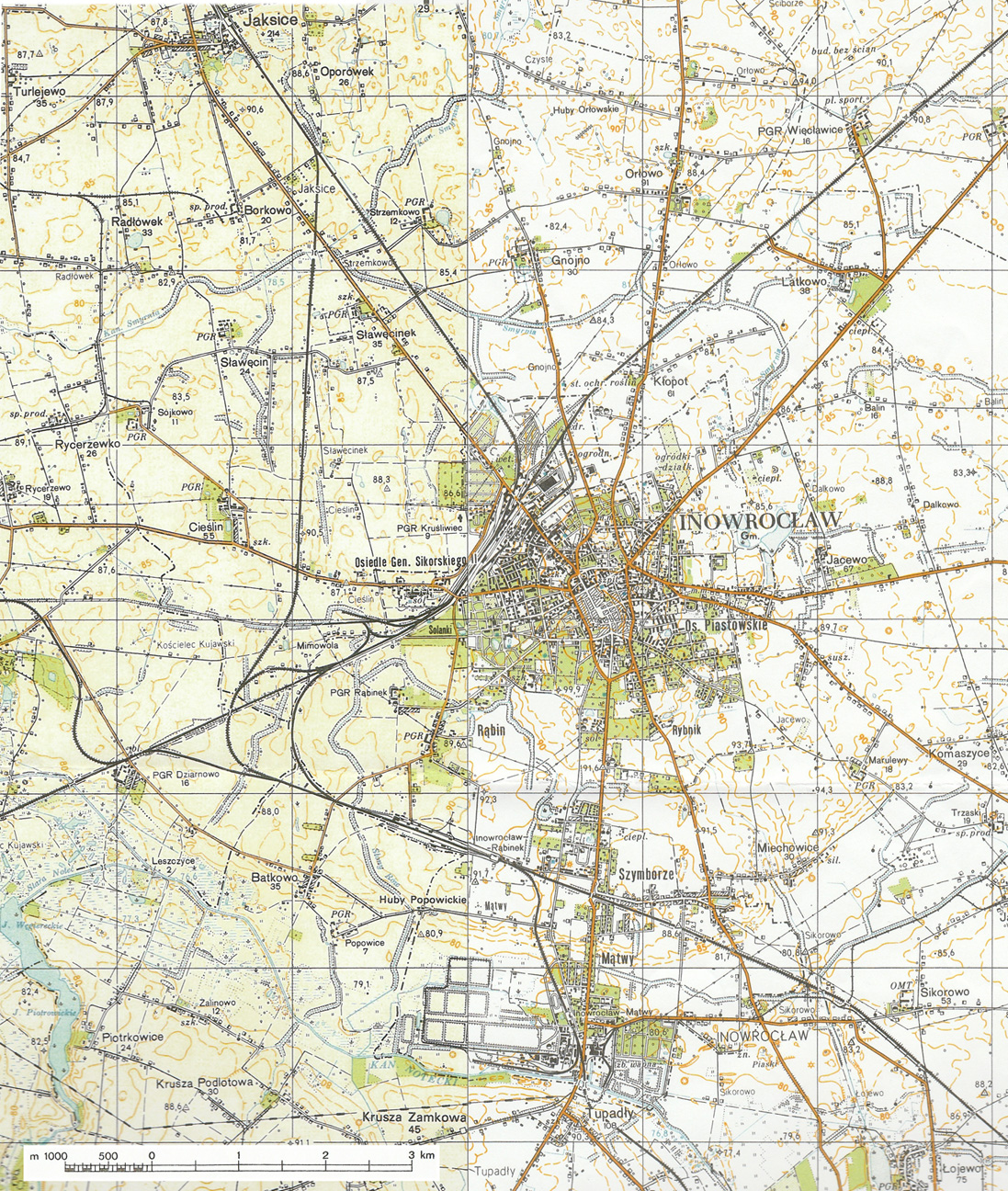 1941年、ナチによる併合時代には石炭幹線にイノブロツワフ駅をバイパスする線路が付け加えられている。旧国境方面のローカル線は1996年に Kruswica までを残し廃止されている。
