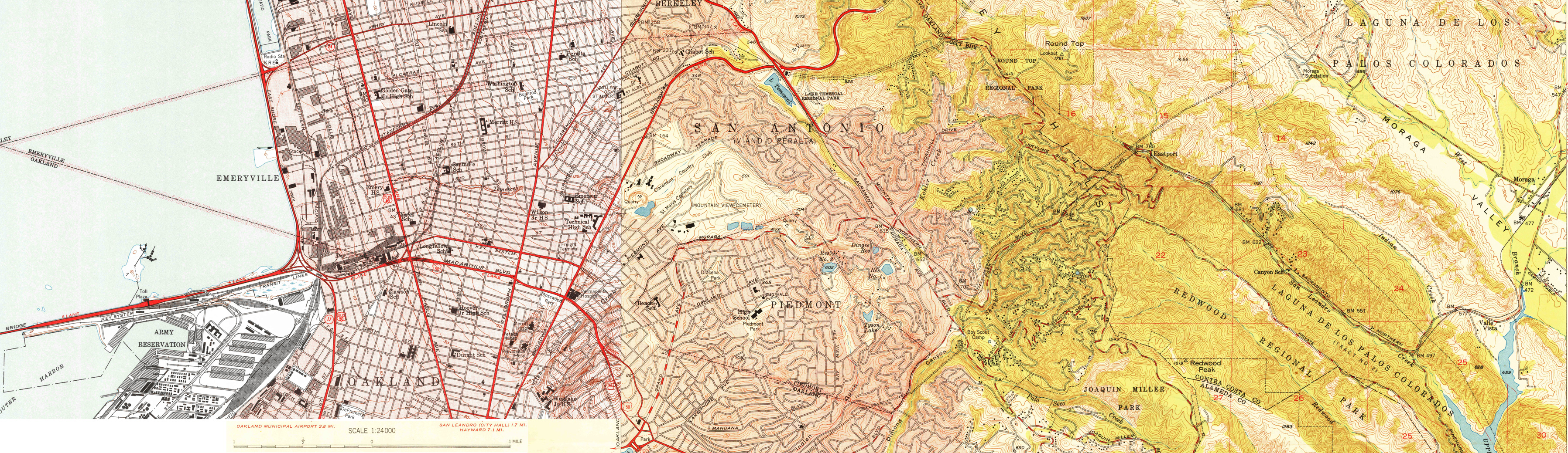 オークランドではキールートの路線に乗り入れ、キールート桟橋でサンフランシスコへのフェリーに連絡していたが、1939年にはベイブリッジの完成により、橋を渡ってトランス・ベイ・ターミナルに乗り入れるようになった。