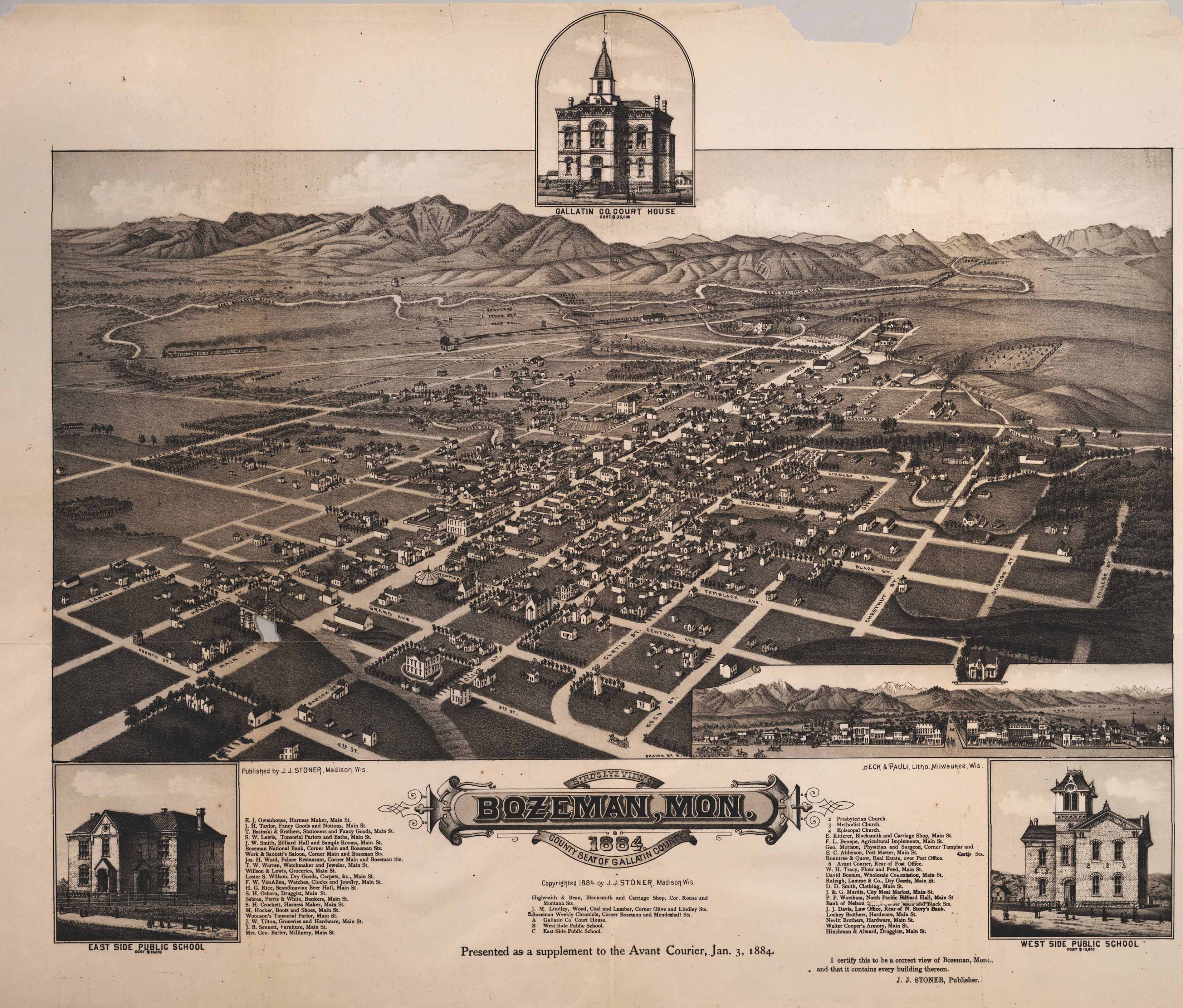 西へ24マイル、ローガン(Logan, MT) は何もない街、そこでノーザンパシフィック鉄道は、オリジナルのヘレナ経由の路線とユニオンパシフィック鉄道と縁の深いビュート経由の路線に分かれる。ヘレナ経由は比較的勾配も緩く、貨物列車に適していていたので、旅客列車の多くはビュートを経由していた。そこからガラティン川(Gallatin River)が開いた平らかな土地を東に行けばボーズマン(Bozeman,MT)、山間の平地、肥沃な土地、この200年の間に開拓されこの地は、農業の地である。そしてさらにベルト山脈(Belt Range 5785fth)をボーズマントンネル(Bozeman Tunnel 5560fth 3015ftl) で越えればイエローストン国立公園(Yellow Stone National Park)への乗換駅リビングストン(Livingstone,MT)に着く。