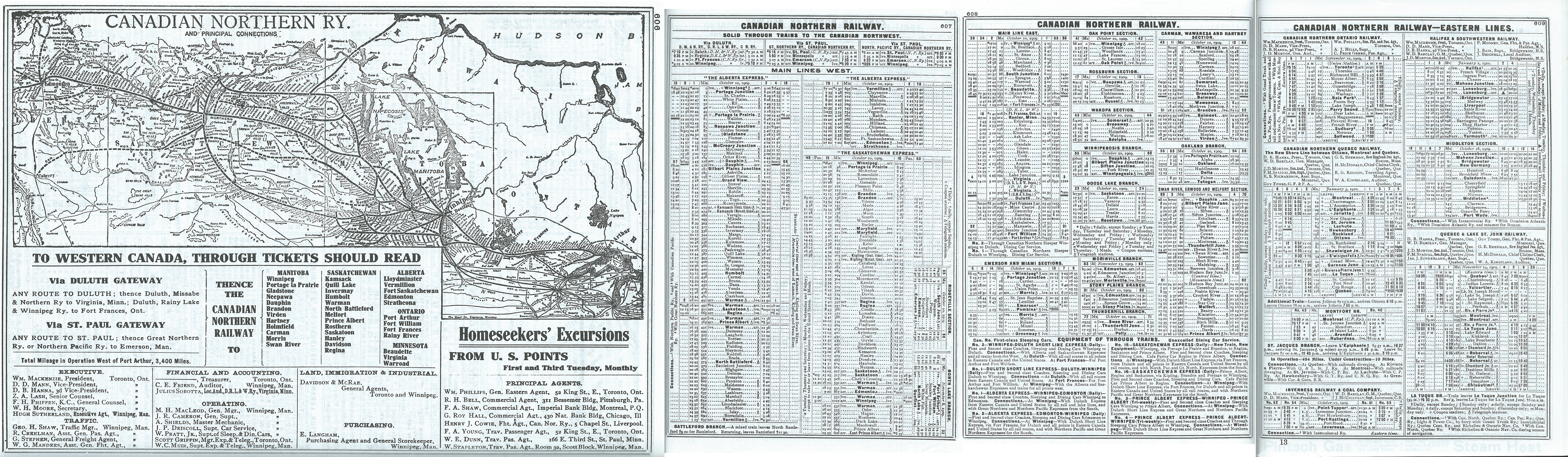 左: 1901年時刻表 NP線の一部 Manitoba Division として運行している頃