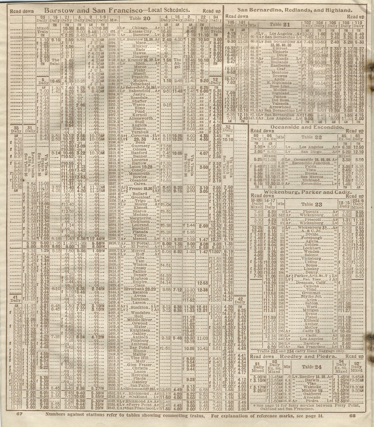 サンフランシスコ サンワーキン渓谷鉄道(San Francisco & SanJoaquin Valley Railroad)は、1896年10月、ストックトンとフレズノ(Fresno, CA)の間で開通した。1898年5月27日にはベイカーズフィルド(Bakersfield,CA)まで伸び、1899年にはサンタフェ鉄道(Atchison, Topeka & Santa Fe Railway)によって買収され、1900年5月1日、リッチモンドへの貨物列車の運転開始、旅客列車は2か月遅れて7月1日から運転された。