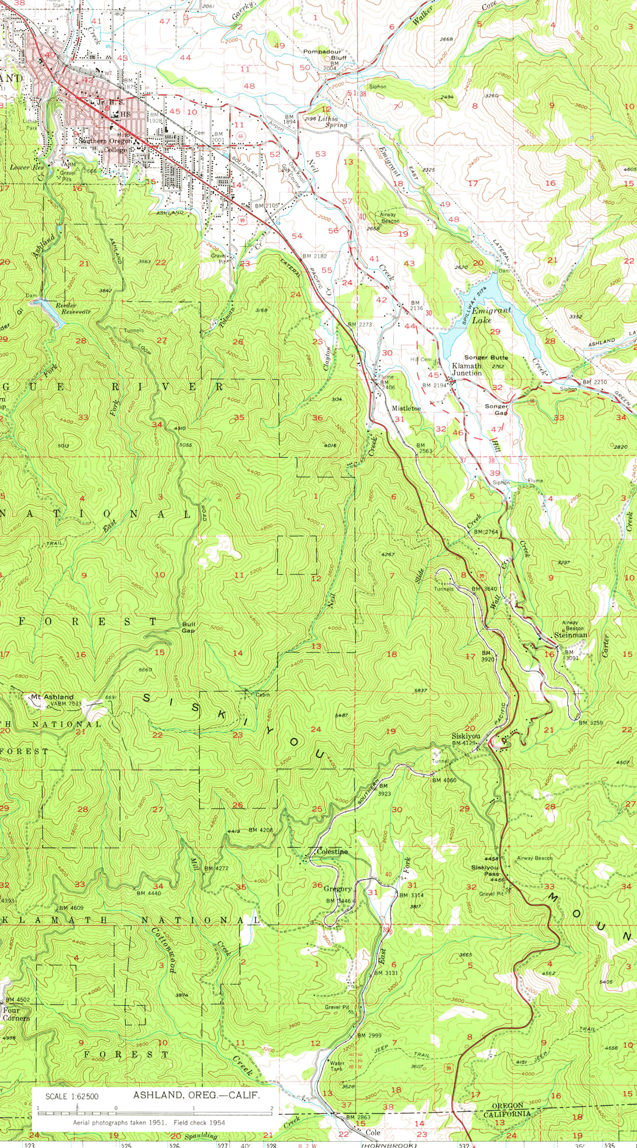 シャスタルートではオレゴン・カリフォルニア州境の山地を超えるために、ループトンネルや馬蹄形線が用いられた。