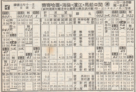 時刻表:昭和9年 馬船口への列車が載っている。