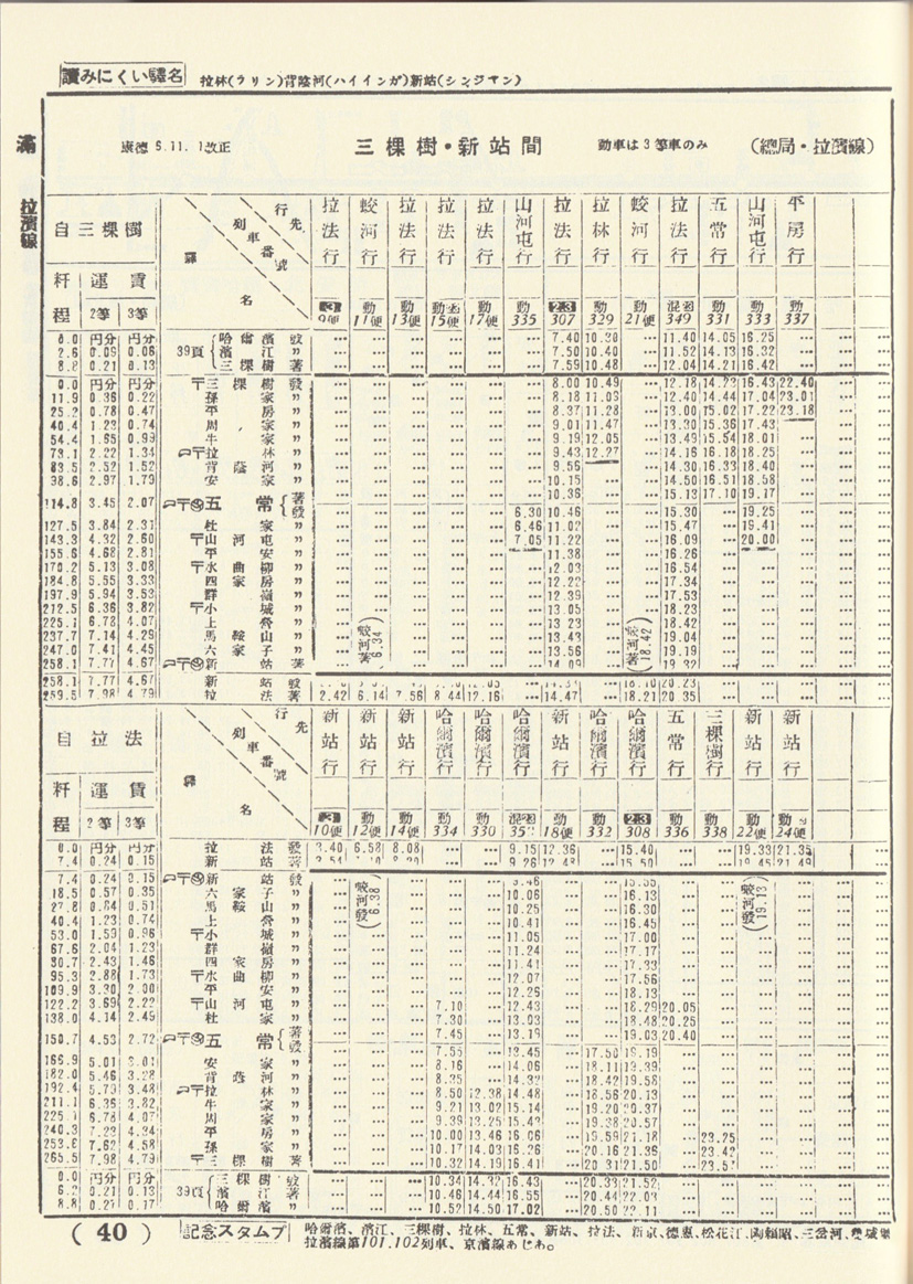 拉浜線は1933(昭和8)年4月21日に拉法 - 新站 - 六家子間の仮営業から始まり、昭和9年1月10日に三課樹までの全線が開通、同年9月1日に正式開業をした。新站には機関区や満鉄従業員の社宅、鉄道倶楽部が作られ、拉浜線の拠点駅であった。新站-拉法間の区間運転列車も運転されていた。